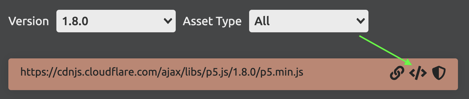 To look for libraries hosted on a CDN, you can search for the library name on cdnjs.com. For example, if you search for “p5js”, you’ll find a link to cdnjs.com/libraries/p5.js.