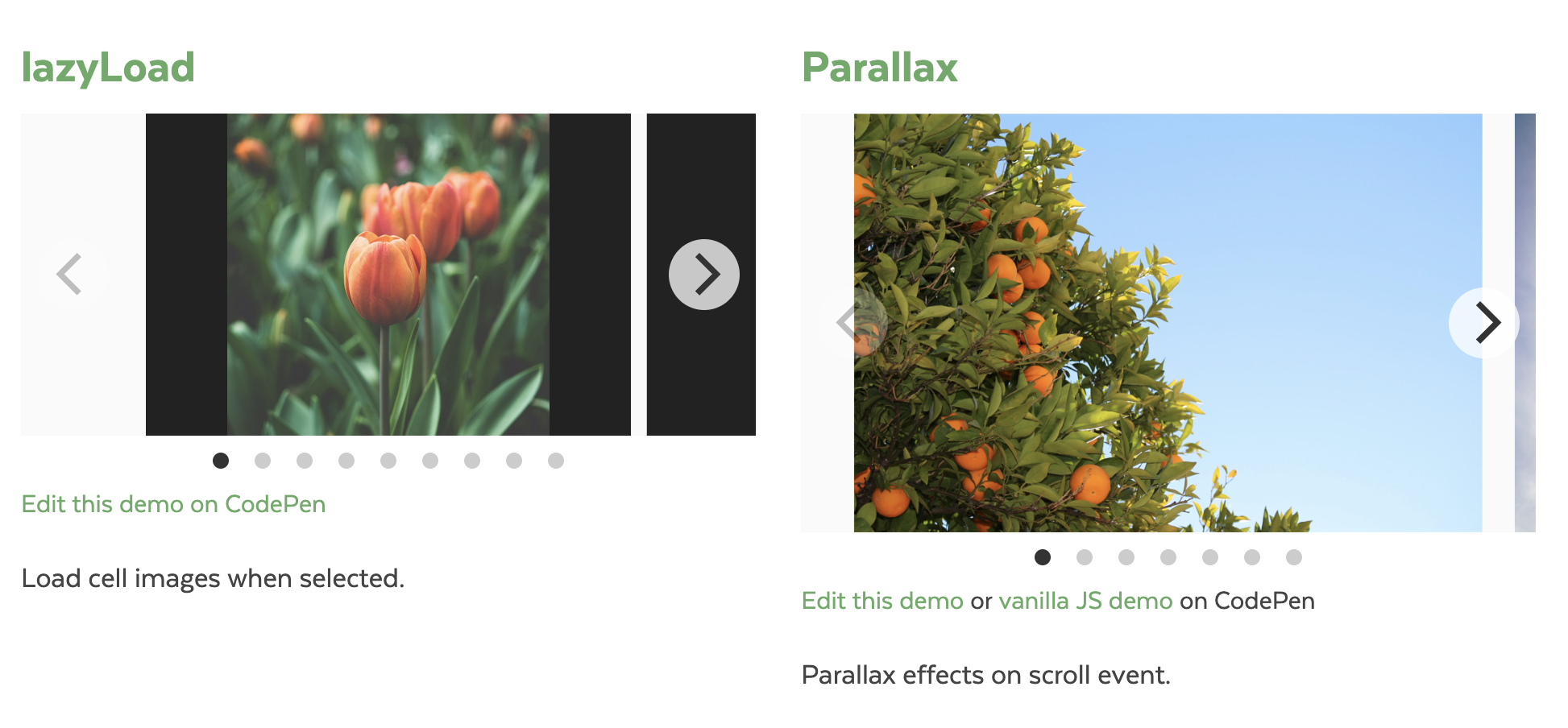 Flickity is a touch-friendly, responsive carousel library. It’s designed to create sliders that work well on many devices and browsers, with easy-to-use features for scrolling through items: